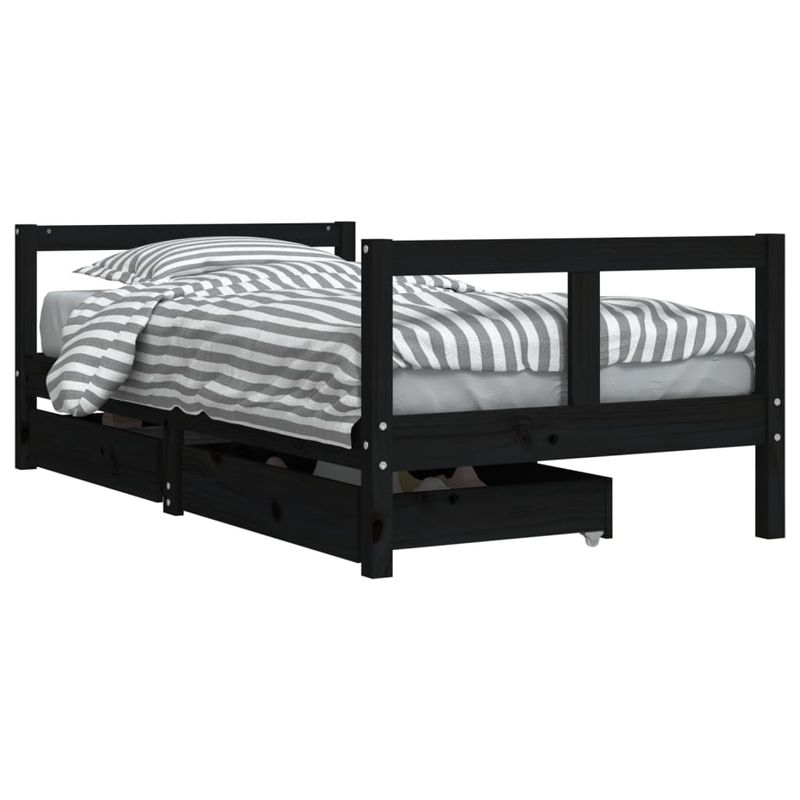 Cadru de pat copii cu sertare, negru, 80x160 cm, lemn masiv pin Cadru de pat copii cu sertare, negru, 80x160 cm, lemn masiv pin