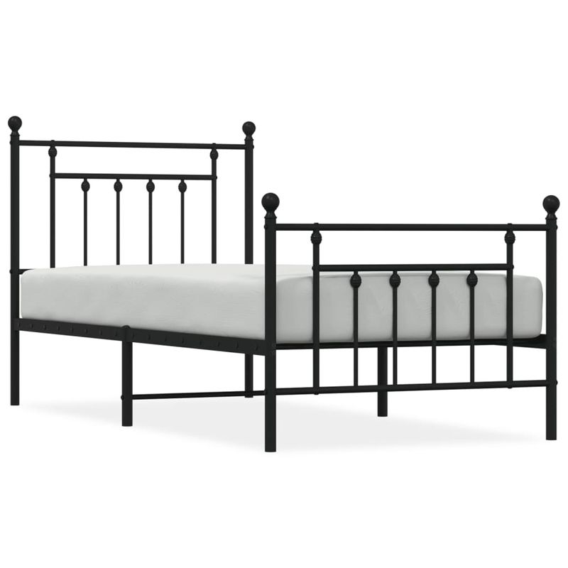 Cadru pat metalic cu tablii de cap/picioare, negru, 90x200 cm Cadru pat metalic cu tablii de cap/picioare, negru, 90x200 cm