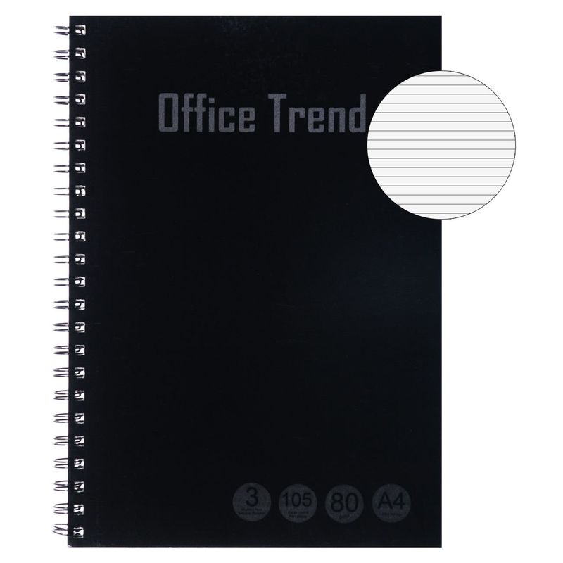 Caiet dictando office trend a4, 3 subiecte, coperta moale, spirala, 96 file, negru Caiet dictando office trend a4, 3 subiecte, coperta moale, spirala, 96 file, negru