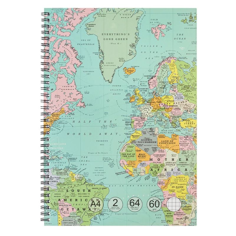 Caiet matematica, a4, harta lumii, 64 file, spirala, 2 subiecte, multicolor Caiet matematica, a4, harta lumii, 64 file, spirala, 2 subiecte, multicolor