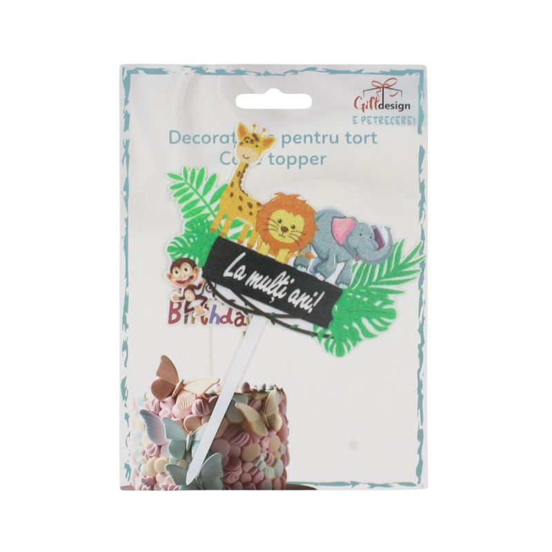 Cu Cake Topper-ul cu Model "Animalute Zoo" si Mesaj "La Multi Ani", veti aduce un zambet pe chipurile tuturor participantilor la petrecere. Acest accesoriu plin de farmec va fi cu siguranta o atractie in centrul petrecerii, aducand un sentiment de bucurie si amuzament.