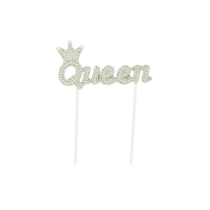 Cake Topper tort Queen perle argintii - Accesoriu Decorativ Elegant pentru Tort