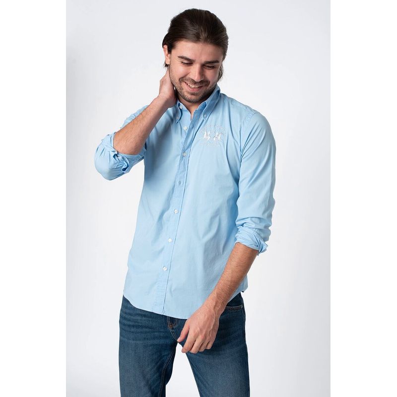 Camasa La Martina regular fit cu logo brodat CCMC01 Camasa La Martina regular fit cu logo brodat CCMC01, XL INTL, Albastru