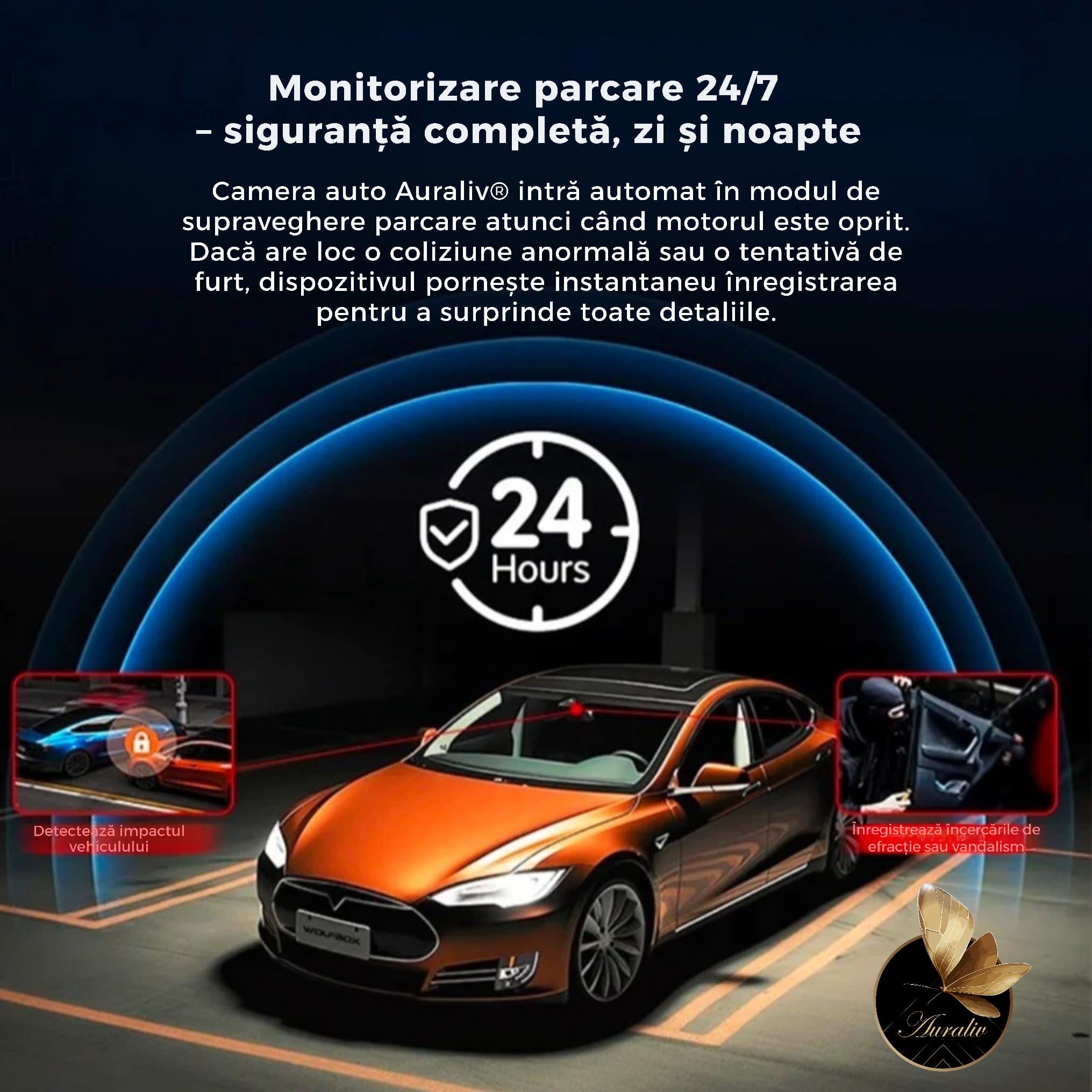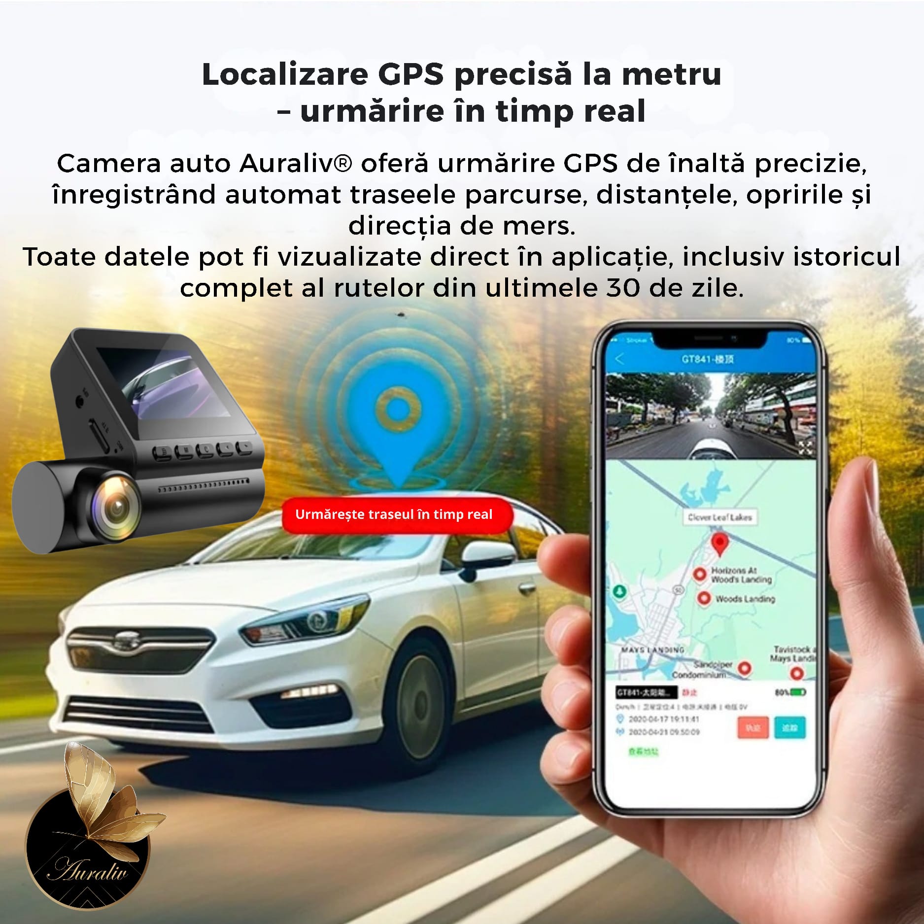 Camera Auto Auraliv® 4K Ultra HD este solutia completa pentru siguranta la volan – un sistem inteligent cu lentila dubla si camera de marsarier 1080P, capabil sa filmeze in detaliu atat fata, cat si spatele vehiculului. Cu GPS integrat, WiFi, Night Vision, G-senzor, monitorizare parcare 24/7 si card de 256GB inclus, ofera protectie totala, calitate video premium si control complet direct de pe telefon.