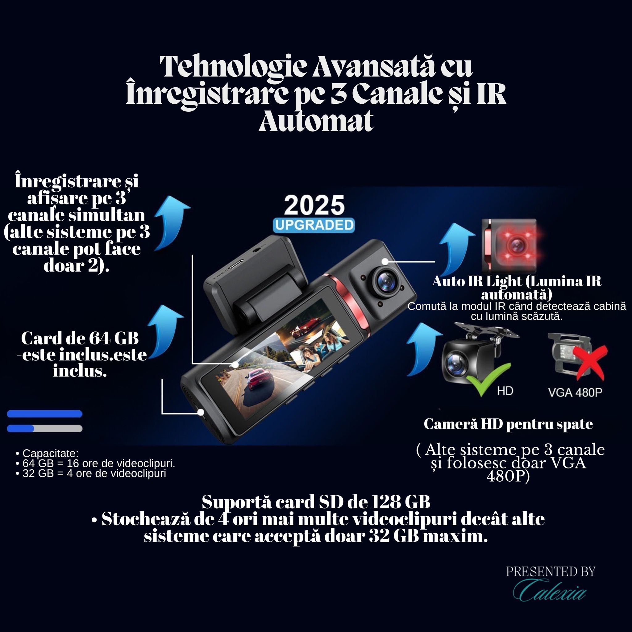 - Inregistrare automata in bucla: Asigura stocare continua prin suprascrierea automata a fisierelor vechi.