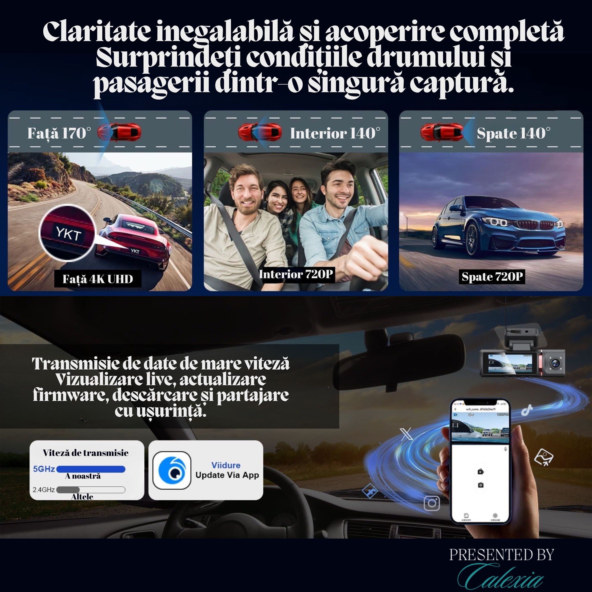 Camera Auto SafePro 6 in 1 Multifunctionala 4K Ultra HD cu Camera Marsarier 720P, GPS, WIFI, Card MicroSD 64GB Inclus, Detectare Miscare si Monitorizare Parcari