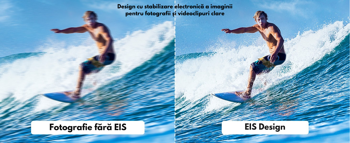 Spune adio imaginilor tremurate! Tehnologia EIS (stabilizare electronica) asigura o filmare clara si stabila, chiar si in miscare intensa.
