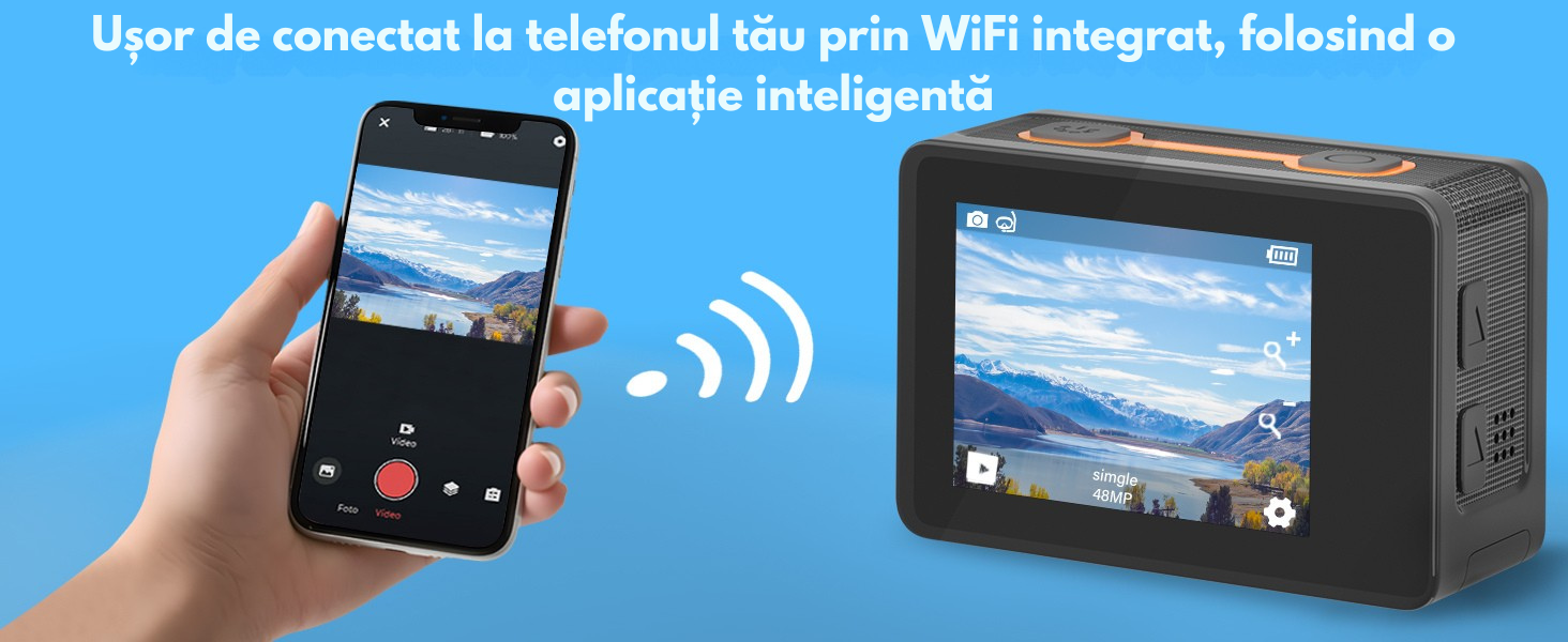 Camera de Actiune 5K Ultra HD, Dasbo®, Ecran Dublu, Wifi + Aplicatie, 48MP, Rezistenta la Apa 30M, Telecomanda Camera de Actiune 5K Ultra HD, Dasbo®, Ecran Dublu, Wifi + Aplicatie, 48MP, Rezistenta la Apa 30M, Telecomanda