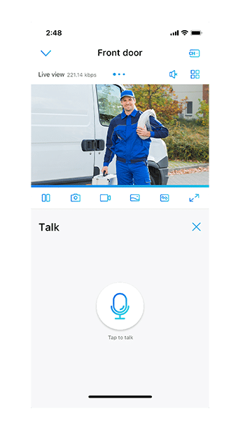 Camera va porni automat atunci când te vei conecta la ea pentru o transmisiune live. Prin accesarea de la distanță poți să ajungi în mijlocul familiei tale, chiar dacă fizic ești la distanță. Camera dispunând de microfon și difuzor poți ca, în timp ce îți vezi familia, să și vorbești cu ea.