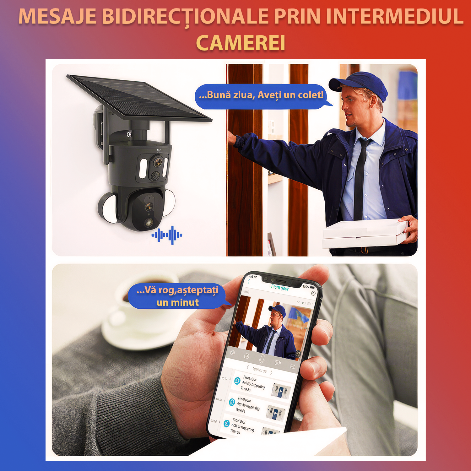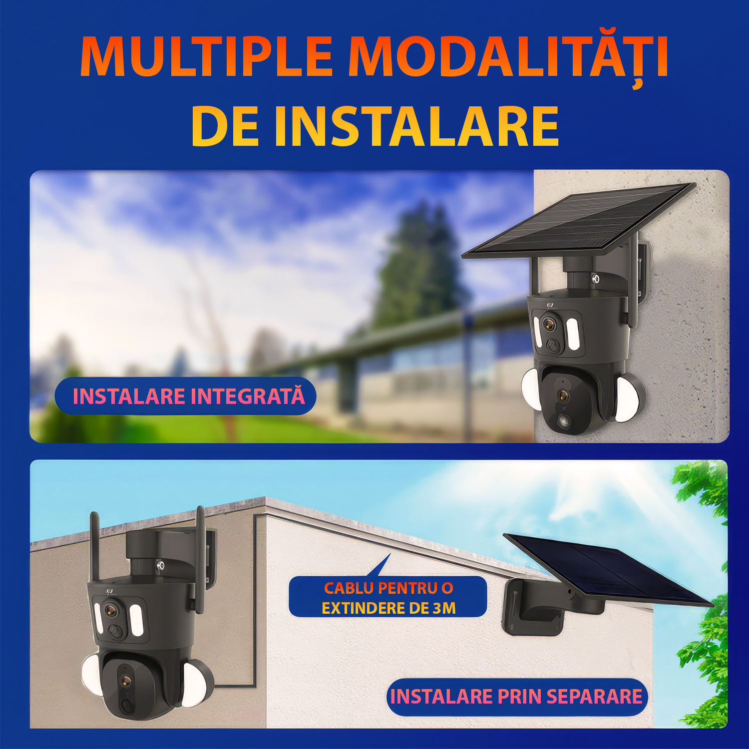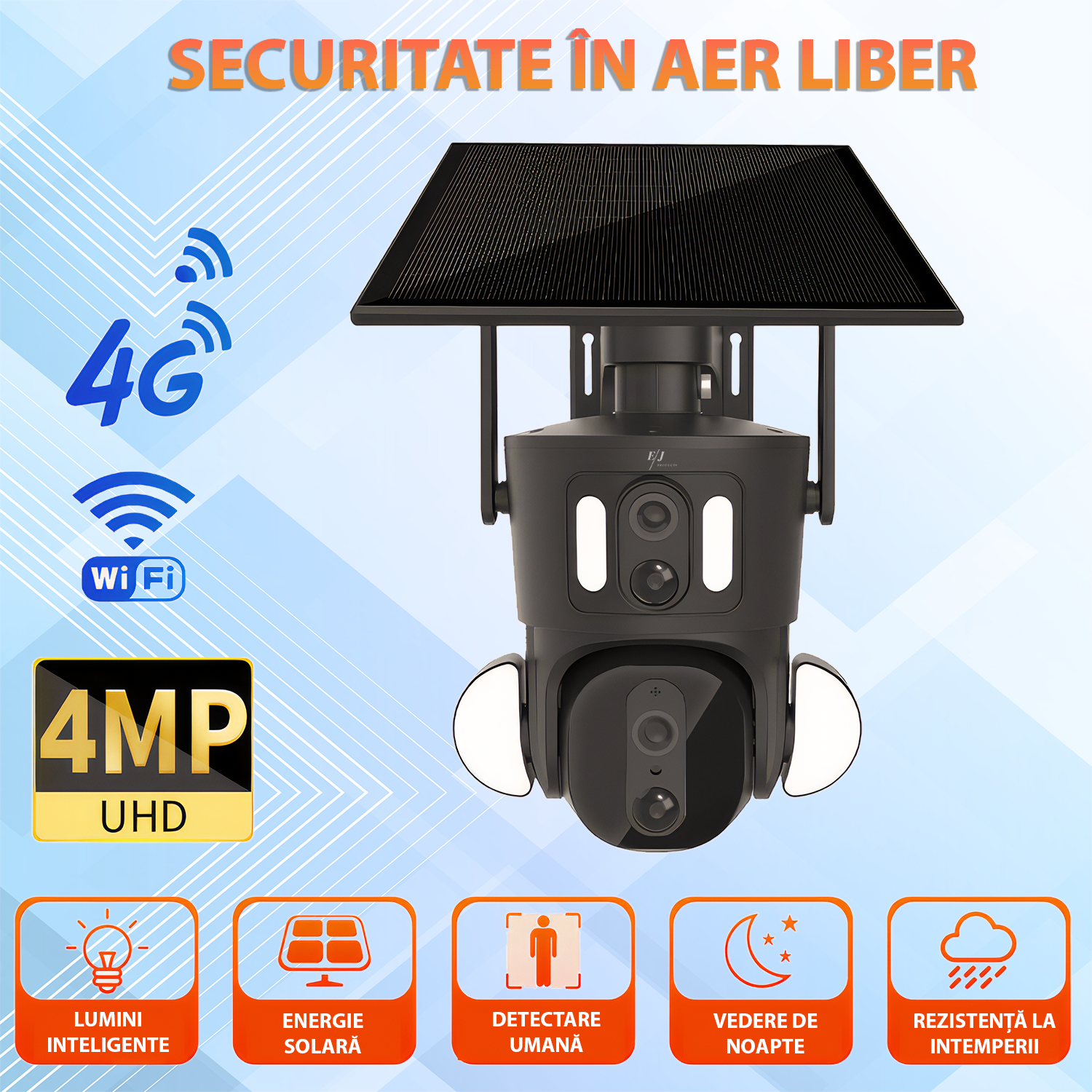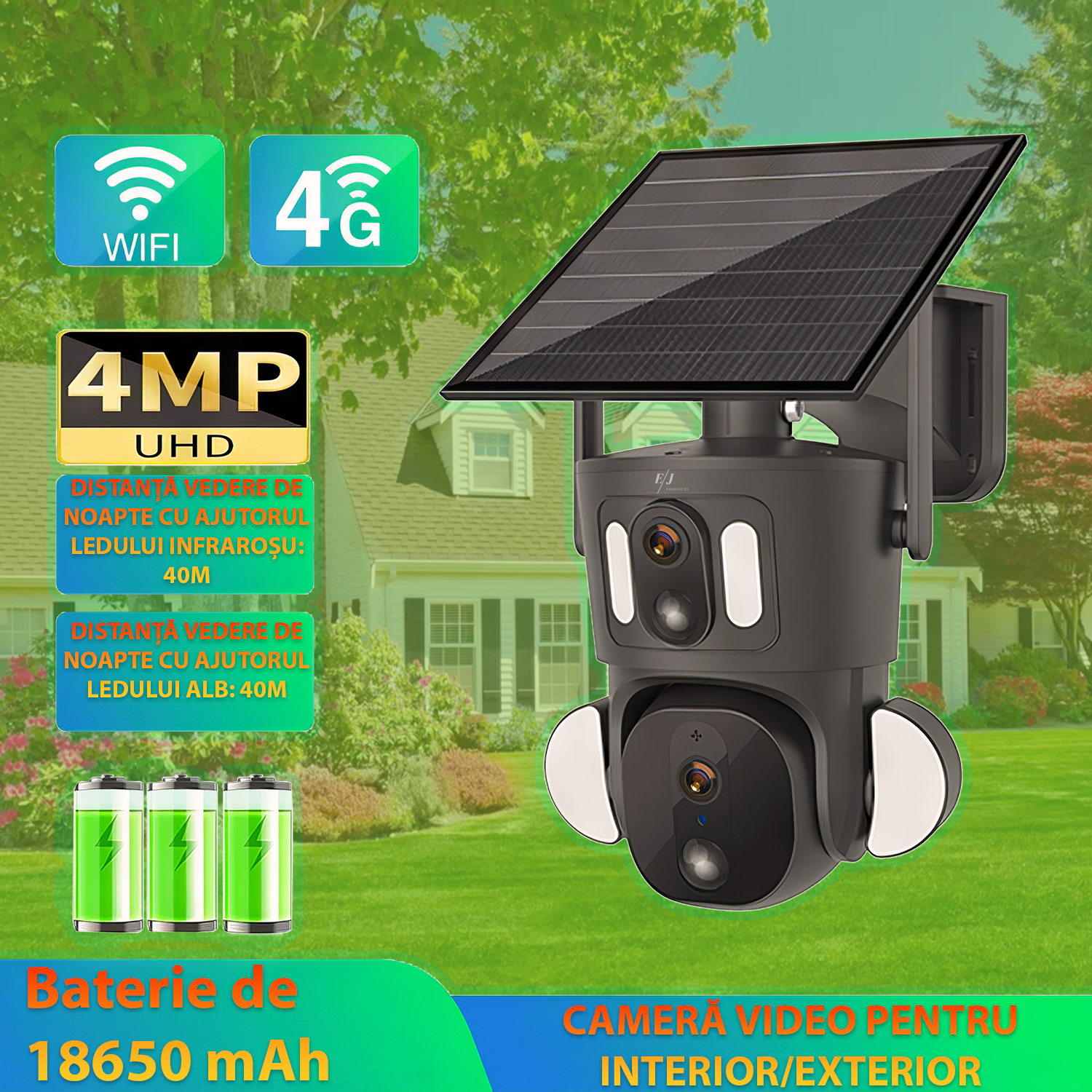 Cu un sistem de camere cu lentile duble si o rezolutie de 4MP, veti captura fiecare detaliu important. Fiind alimentata de energie solara, camera va functiona chiar si in zonele fara acces la electricitate.