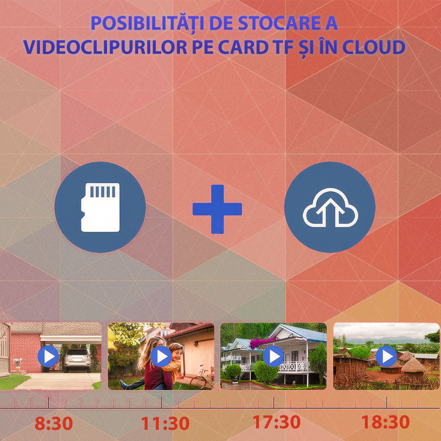 Cu suport pentru card TF (maxim 128 GB) si stocare in cloud , veti avea intotdeauna acces la inregistrarile video importante. De asemenea, conexiunea WiFi si compatibilitatea cu aplicatia mobila UBox va permit sa monitorizati si sa redati inregistrarile de la distanta, oricand si oriunde.