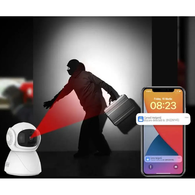 Păzește-ți casa și familia 24/7 Camera IP Wi-Fi, funcționează cu aplicația de telefon YiioT (sunt acceptate atat iPhone, cat și Android).
