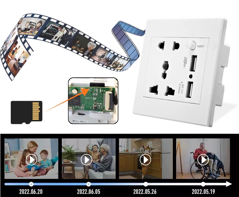PRIZA UNIVERSALA DE PERETE CU CAMERA VIDEO FULL HD SI 2 PORTURI USB-A