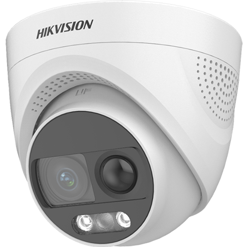 Camera de supraveghere video Analog HD ColorVu, tip Bullet de la Hikvision, echipata cu senzor PIR, avertizare sonora si stroboscop, speaker incorporat, 1 x iesire de alarma OUT, imagine Color 24/7 cu ajutorul luminii albe de pana la 20 metri, rezolutie 8MP (3840×2160)@15fps, lentila 2.8mm, unghi vizualizare 108°, iesire video analog HD. Detectarea corpului uman cu ajutorul senzorului pasiv de temperatura prin infrarosu (PIR) pe o distanta de pana la 11 metri.