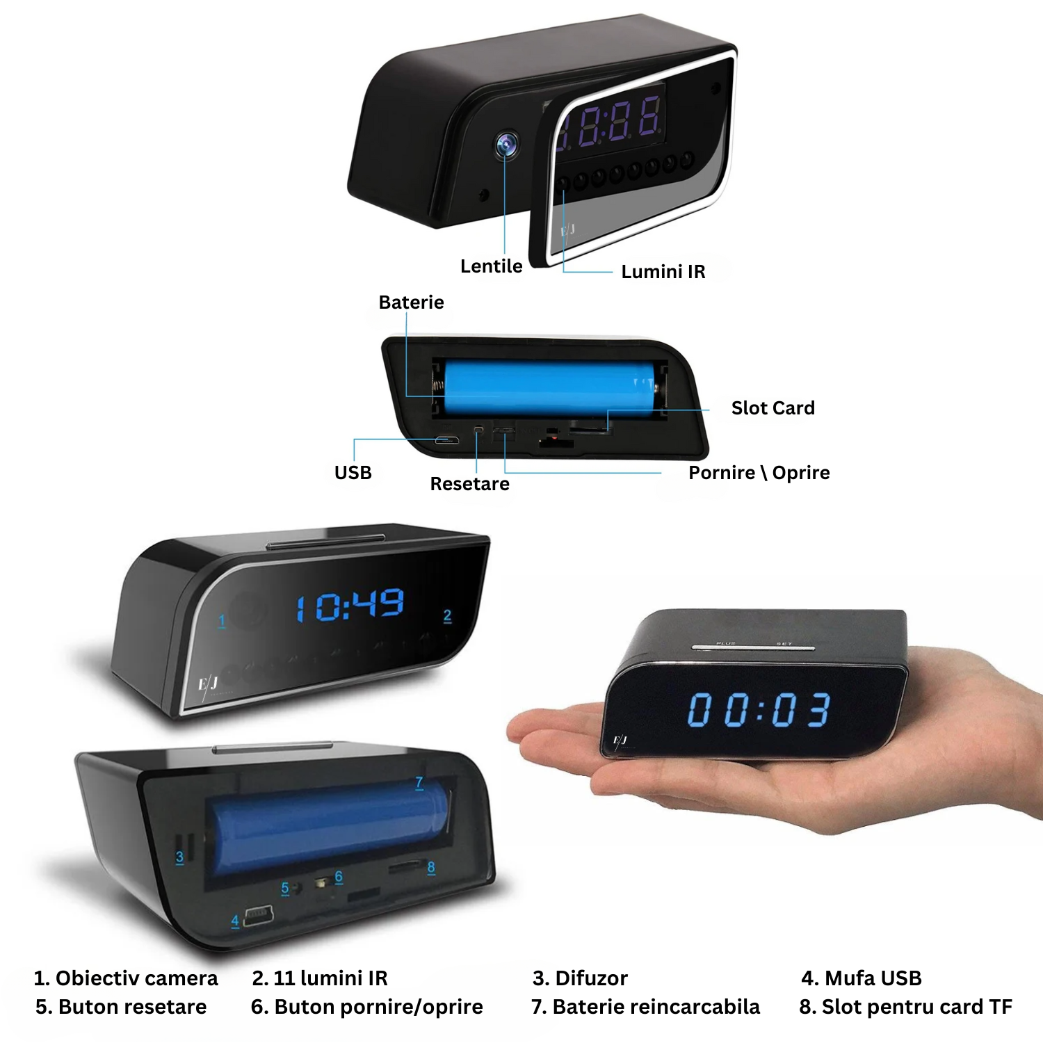 Specificatii tehnice mini camera wi-fi IP in ceas de birou