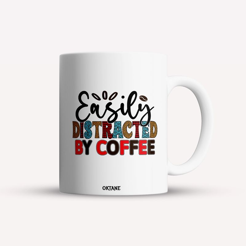 Cana alba personalizata Easily distracted by coffee, INOVATIX®. 330ml Cana alba personalizata Easily distracted by coffee, INOVATIX®. 330ml