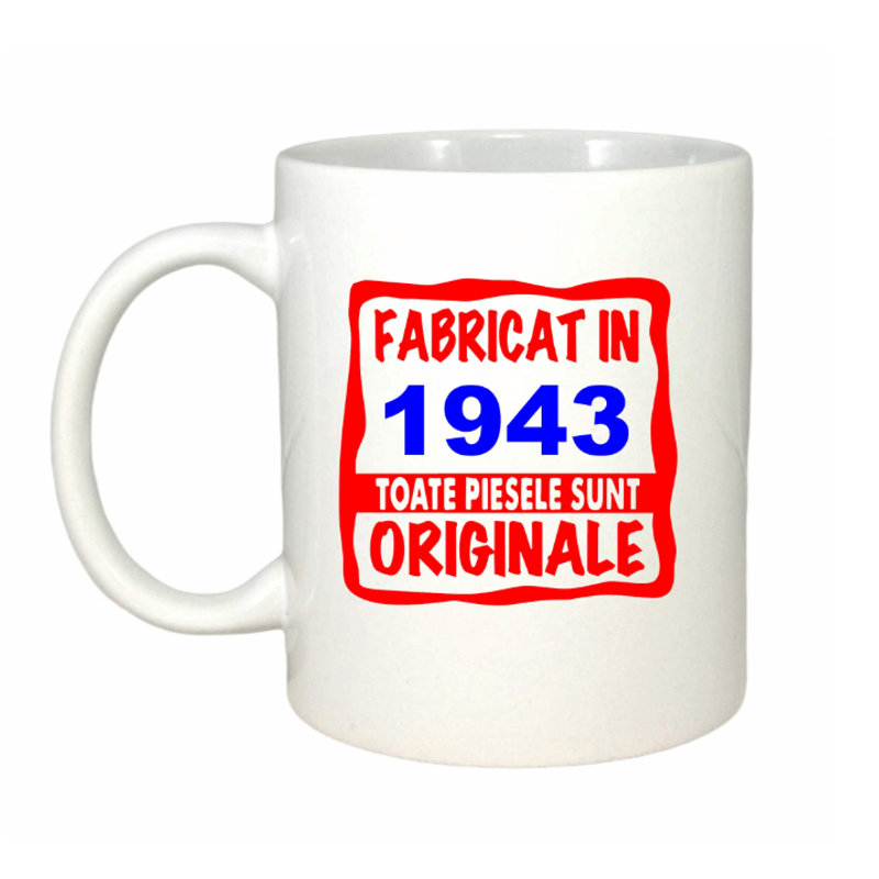Cana alba personalizata Fabricat in 1943 toate piesele sunt originale, INOVATIX®. 330ml Cana alba personalizata Fabricat in 1943 toate piesele sunt originale, INOVATIX®. 330ml