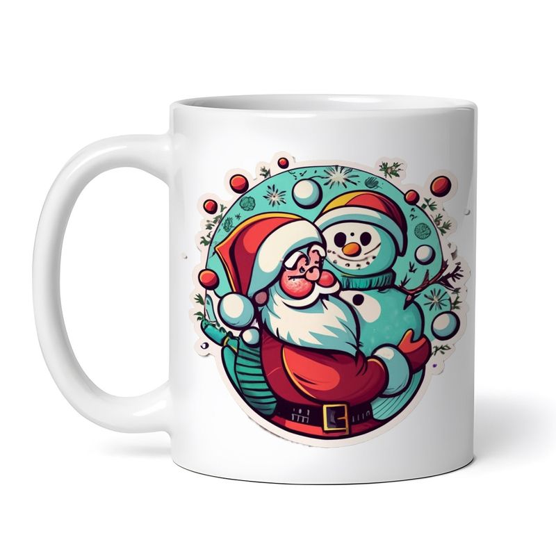 Cana alba personalizata, Mos Craciun il tine in brate pe omul de zapada, INOVATIX®. 330ml Cana alba personalizata, Mos Craciun il tine in brate pe omul de zapada, INOVATIX®. 330ml