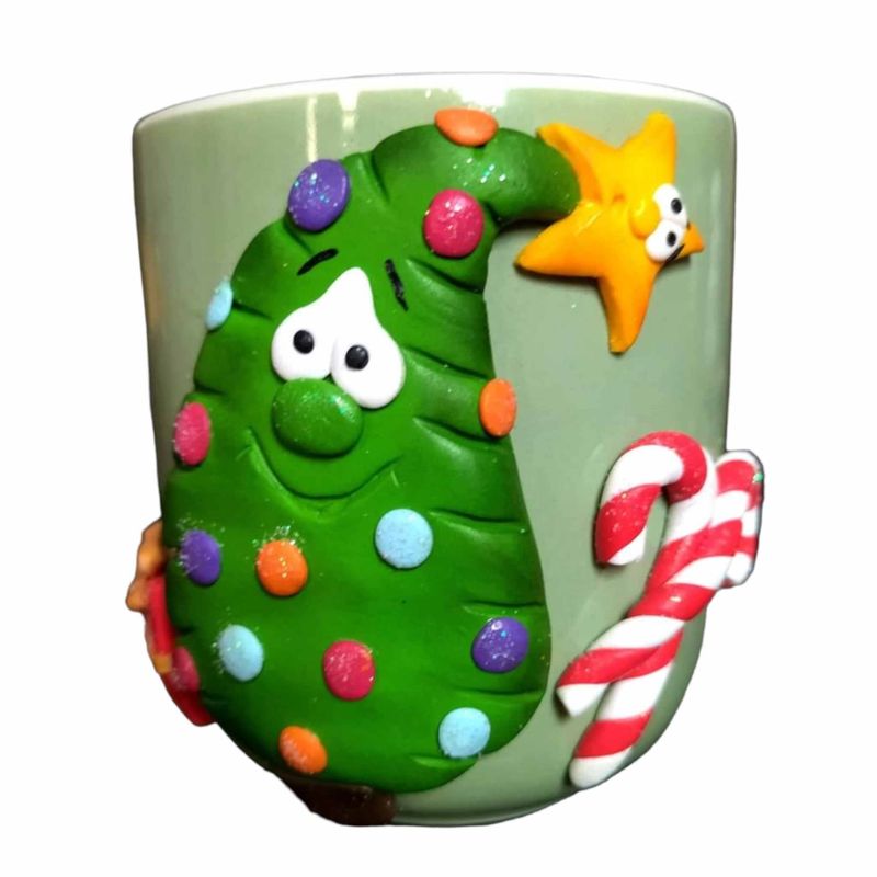 Cana de Craciun Fimo "Bradut" modelat manual cu lut polimeric Cana de Craciun Fimo "Bradut" modelat manual cu lut polimeric