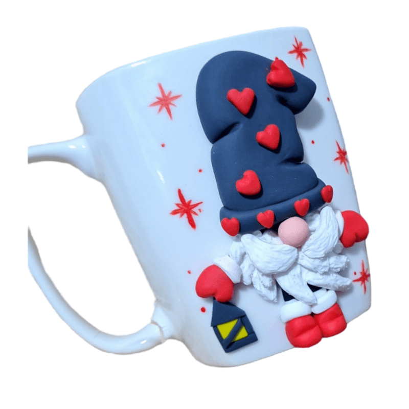 Cana de Craciun Fimo "Gnom cu felinar" modelat manual cu lut polimeric Cana de Craciun Fimo "Gnom cu felinar" modelat manual cu lut polimeric