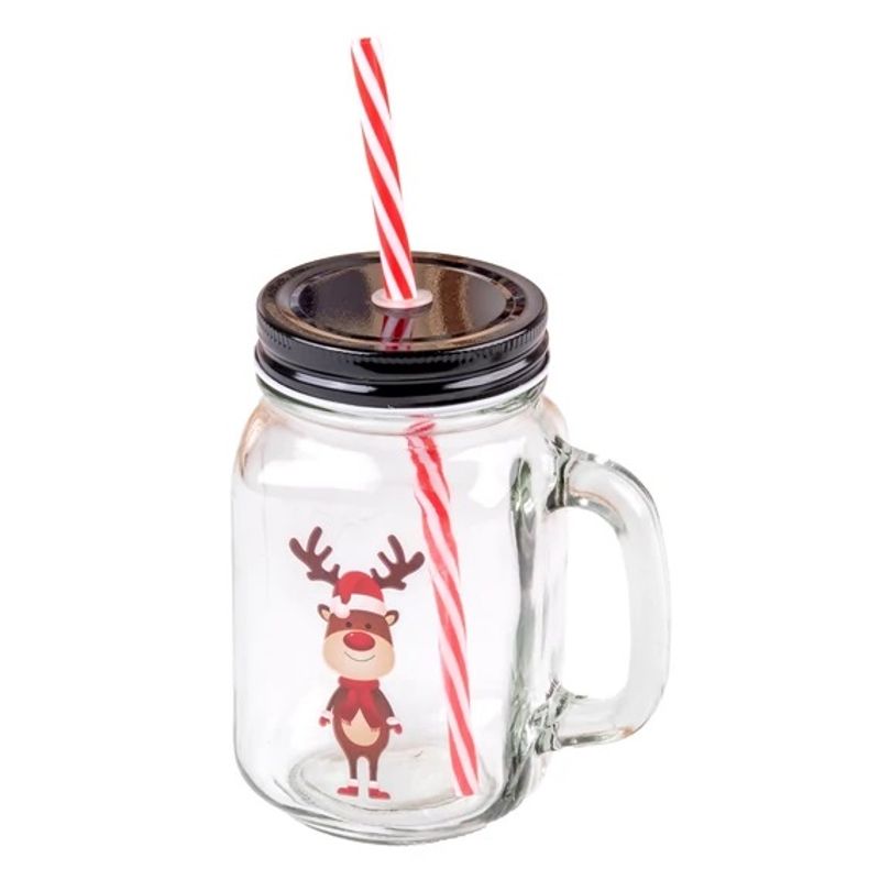 Cana din sticla cu decoratiuni de Craciun, Ren si pai Cana din sticla cu decoratiuni de Craciun, Ren si pai