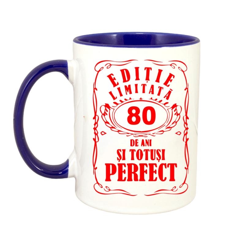 Cana maner albastru personalizata Editie limitata-80 ani, INOVATIX®. 330ml Cana maner albastru personalizata Editie limitata-80 ani, INOVATIX®. 330ml
