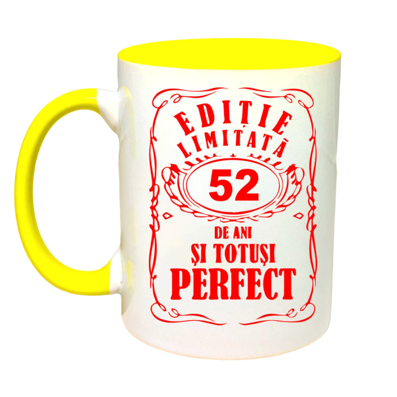 Cana maner galben personalizata "Editie limitata-52 ani", INOVATIX®. 330ml Cana maner galben personalizata "Editie limitata-52 ani", INOVATIX®. 330ml