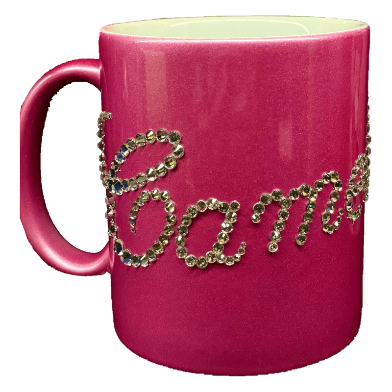 Cana personalizata cu cristale Camelia roz sidef, 325 ml Cana personalizata cu cristale Camelia roz sidef, 325 ml