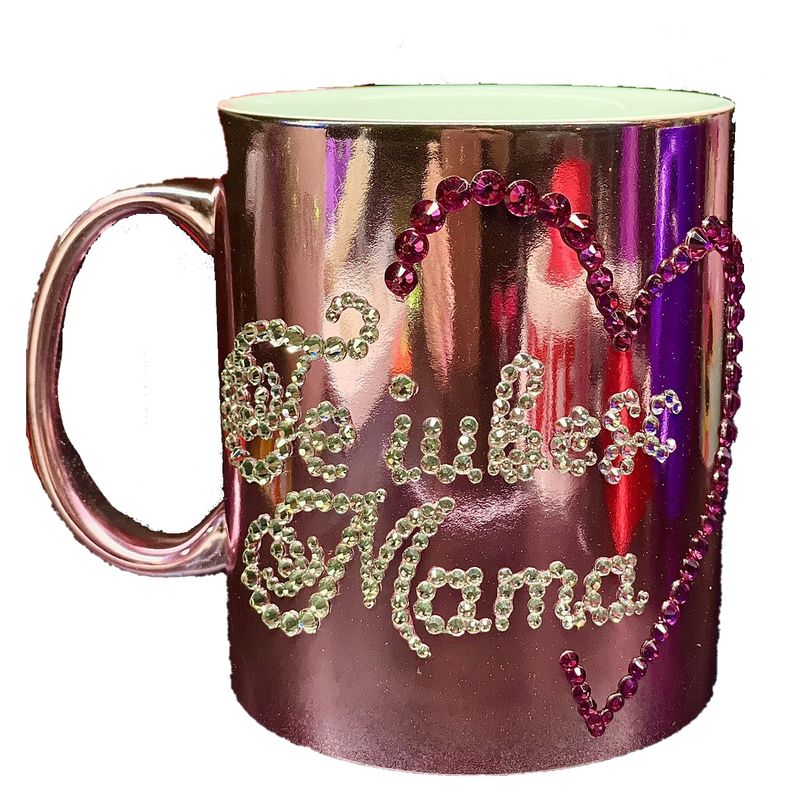 Cana personalizata cu cristale te iubesc mama roz chrome , 325 ml Cana personalizata cu cristale te iubesc mama roz chrome , 325 ml