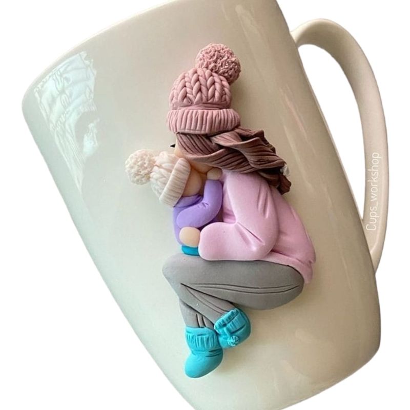Cana personalizata cu lut polimeric Fimo "Mama si copil", handmade Cana personalizata cu lut polimeric Fimo "Mama si copil", handmade