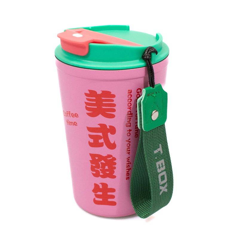 Cana termos pentru cafea, otel inoxidabil, 380ml, roz cu verde Cana termos pentru cafea, otel inoxidabil, 380ml, roz cu verde