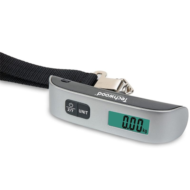 Cantar digital de mana pentru bagaje Techwood, afisaj LCD functia TARE, maxim 50 kg, argintiu Cantar digital de mana pentru bagaje Techwood, afisaj LCD functia TARE, maxim 50 kg, argintiu