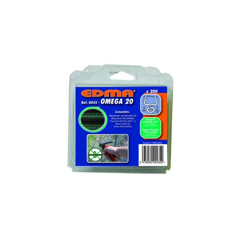 Capse galvanizate cu acoperire PVC verde 200 bucati OMEGA, DIM 20 mm EDMA - 043501 Capse galvanizate cu acoperire PVC verde 200 bucati OMEGA, DIM 20 mm EDMA - 043501