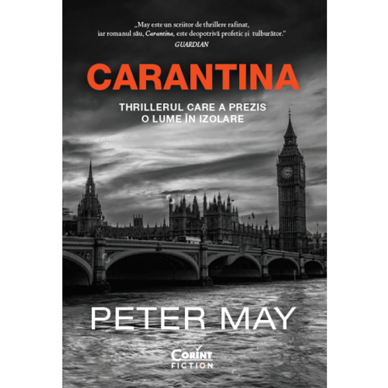 „Timp de șase săptămâni am scris, noapte de noapte, ca sub puterea unei vrăji, Carantina. Cartea n-a fost publicată. Editorii britanici de la acea vreme au considerat că portretul pe care îl făceam Londrei sub asediul inamicului invizibil H5N1 era nerealist și că așa ceva nu se va întâmpla niciodată [...], iar fișierul Carantina a fost expediat într-un folder din Dropbox, unde a și rămas. Până acum. În timp ce scriu aceste rânduri, sunt din nou acasă, în Franța, cu somația de a nu părăsi locuința decât în situații excepționale. Un nou coronavirus, Covid-19, face ravagii în lume, iar societatea, așa cum o știm noi, se dezintegrează rapid. [...] Politicienii sunt nevoiți să țină sub control haosul și panica pe care Covid-19 le răspândește în lume. [...] Așa că acesta mi s-a părut momentul potrivit pentru a deschide dosarul prăfuit din Dropbox și pentru a scoate acel vechi manuscris, cu gândul de a-l împărtăși cu cititorii mei – măcar și pentru a putea înțelege cu toții că lucrurile ar putea fi încă și mai grave.” PETER MAY