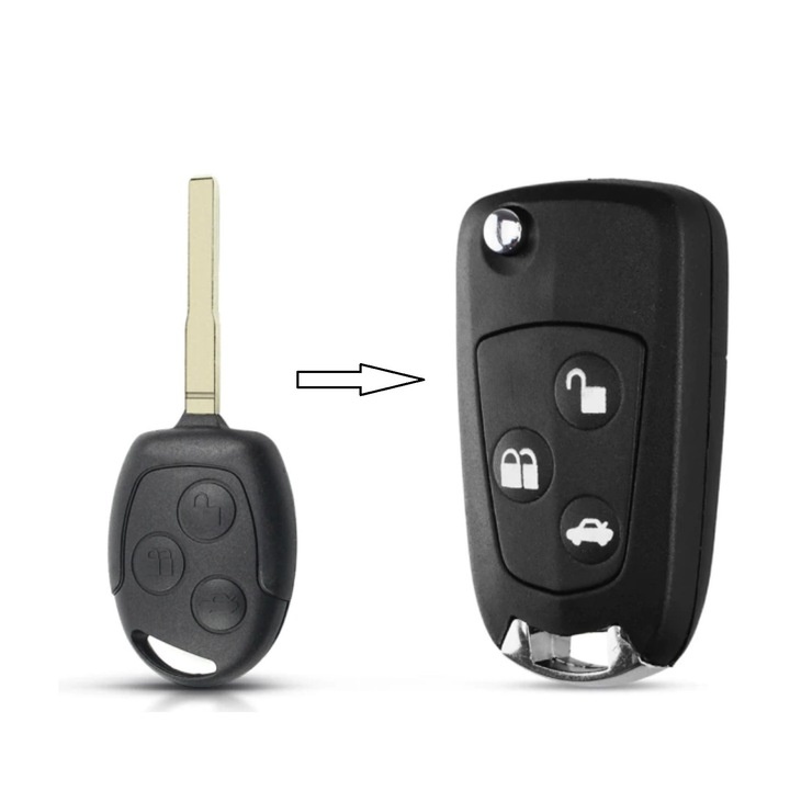 Carcasa cheie auto transformatoare tip briceag, Techstar, compatibila cu Ford Mondeo, Focus, Fiesta, 3 butoane modificat Carcasa cheie auto transformatoare tip briceag, Techstar, compatibila cu Ford Mondeo, Focus, Fiesta, 3 butoane modificat