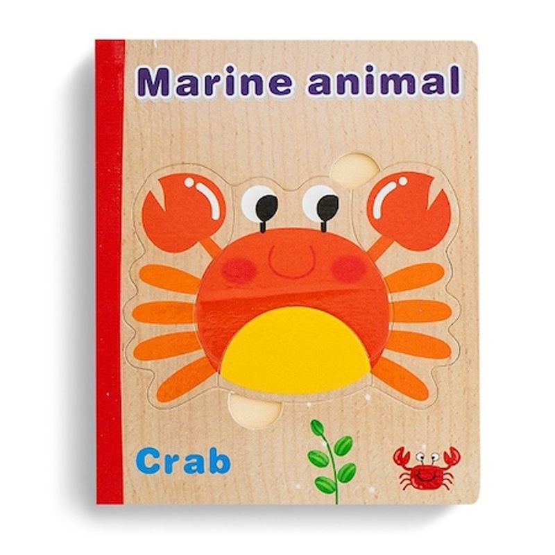 Carte 6 puzzle din lemn - Animale Marine, 7Toys Carte 6 puzzle din lemn - Animale Marine, 7Toys