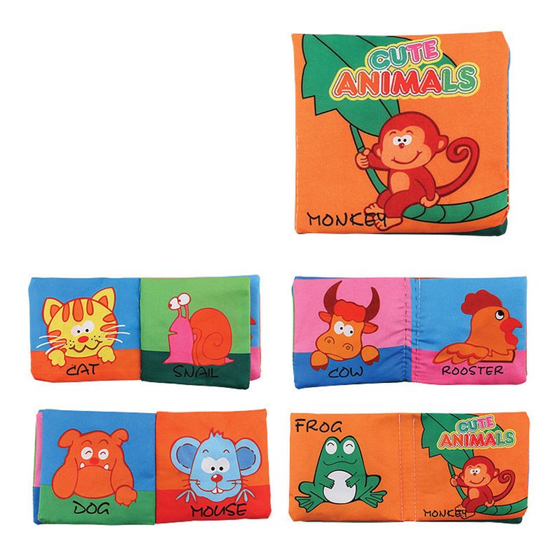 Carte senzoriala fosnitoare bebelusi, cu animalute colorate, Cute animals, 4 pagini, 8 fete, 10 cm x 2,5 cm x 9 cm Carte senzoriala fosnitoare bebelusi, cu animalute colorate, Cute animals, 4 pagini, 8 fete, 10 cm x 2,5 cm x 9 cm
