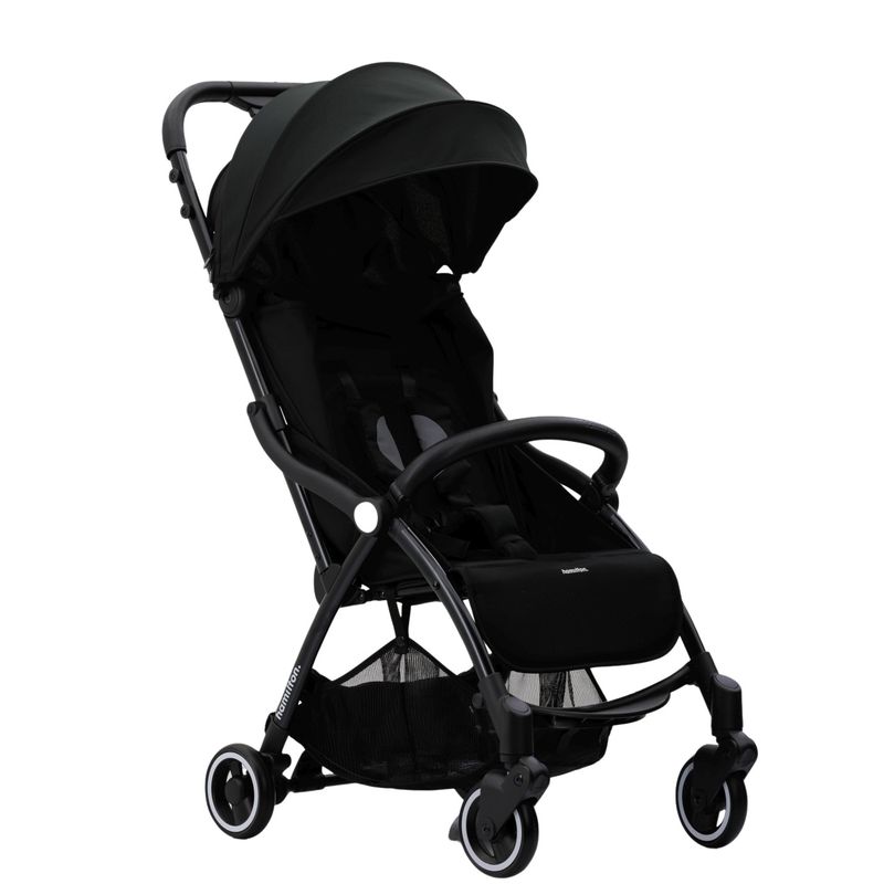 Carucior sport cu pliere compacta automata, Hamilton X1 PLUS, BLACK Caruciorul care creste odata cu copilul tau Caruciorul Hamilton X1 PLUS BLACK de la Yoop are o rama de aluminiu anodizat de inalta calitate si material premium. Datorita sezutului spatios si confortabil, Caruciorul reprezinta un loc sigur pentru bebelusul tau, de la nastere pana la 4 ani sau pana la 22 kg. Hamilton X1 PLUS BLACK este unul dintre cele mai usoare modele de carucioare de pe piata, cu o greutate de doar 7,5 kg. Cu functia de pliere compacta si automata devine un partener ideal atat in timpul plimbarilor cat si in calatorii. Indiferent daca te indrepti spre un restaurant sau ai planificat o calatorie mai lunga, Hamilton X1 PLUS BLACK face fata oricarei situatii fara probleme! Ce face ca acest Carucior sa fie o alegere atat de avantajoasa? Sistemul de pliere automata - Pliere si deschidere cu un singur click Carucioarele Hamilton de la Yoop se numara printre cele mai populare carucioare de pe piata. Nu doar datorita calitatii lor premium la preturi accesibile, ci si gratie mecanismului unic MagicFold patentat de noi. Pliaza si deschide in cateva secunde cu o simpla apasare de buton. Conceput pentru a oferi confort In timpul plimbarii, bebelusul tau sta in sezut sau intins complet relaxat in Carucior. Un scaun spatios, cu spatar reglabil in 3 pozitii, plasa de ventilatie si o copertina extensibila cu protectie anti-UV 50+ pentru a proteja impotriva ultravioletelor. Reglarea pozitiilor sezutului acum este mult mai simpla. Accesand clapeta cu o singura mana, puteti regla mult mai simplu pozitia spatarului chiar si atunci cand aveti cealalta mana ocupata. Caruciorul este dotat cu mesh system cu tehnologie climat cool care asigura respirabilitate si confort chiar si pe parcurusul calatoriilor lungi in perioadele fierbinti ale verii. Avand suspesii pe toate cele 4 roti, Caruciorul Hamilton X1 PLUS BLACK de la Yoop poate face fata oricarui drum. Conceput pentru siguranta Hamilton X1 PLUS BLACK este combinatia perfecta intre siguranta, rezistenta si simplitate. Siguranta copilului tau este garantata prin sistemul de centuri magnetice cu prindere in 5 puncte si sistemul de franare unica cu pedala mare. Parintii pot deschide si inchide cu usurinta catarama magnetica. Totusi, catarama este complet sigura pentru copii. Carucioarele Hamilton de la Yoop respecta standardele de siguranta EN 1888. In plus au omologare Oeko-Tex Standard 100 plus pentru materialele textile care sunt testate pentru substante nocive si ecologice Oeko-Tex Standard 100 plus combina cerintele Oeko-Tex Standard 100 (respectarea limitelor substantelor nocive) Oeko-Tex Standard 1000 (productte ecologica, eliminare a apelor uzate, consumul de energie) Unul dintre cele mai compacte carucioare - Potrivit ca bagaj de mana Caruciorul poate fi pliat compact si poate ramane in pozitie verticala fara a necesita sprijin. Datorita unei curele atasate este usor de transportat pe umar. Astfel, nu exista nicio problema in a-l lua cu tine in tren sau in masina! Caruciorul se potriveste in majoritatea compartimentelor pentru bagaje din avioane. Calatorii usoare cu Sistemul de Calatorie - Combinatie perfecta Cand iesiti din masina, fixati scoica auto Zeno pe Caruciorul Hamilton X1 PLUS BLACK folosind adaptorul pentru scoica Hamilton by Yoop. Datorita functiei inteligente 'Easy Click', puteti atasa sau detasa scoica auto cu o singura mana! Specificatii tehnice Lungime 790 mm Lungime dupa pliere 260 mm Latime 480 mm Latime dupa pliere 480 mm Inaltime 1020 mm Inaltime dupa pliere 570 mm Greutate 7.5 kg Ce include pachetul Caruciorul Hamilton X1 Plus, Suport pentru pahar, Geanta de protectie/transport.