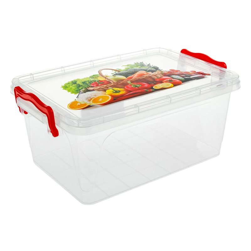 Caserola Alimente din Plastic Transparent cu Manere Rosii 5L Transforma modul in care depozitezi si organizezi alimentele cu aceasta caserola inovatoare din plastic transparent! Cu un design atractiv, avand un model colorat de cos plin de fructe si legume pe capac, aceasta caserola de 5 litri este perfecta pentru a pastra prospetimea alimentelor tale.