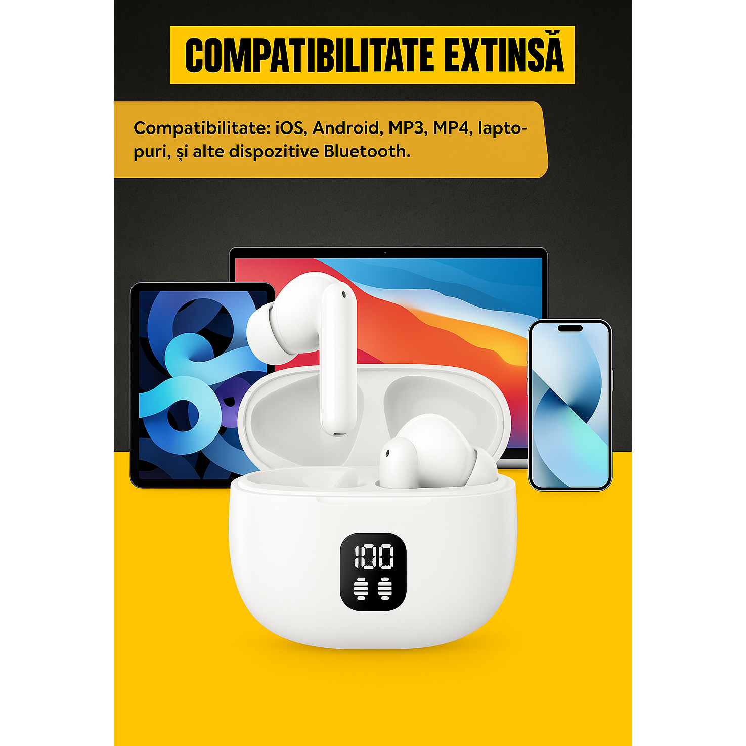 Castile noastre sunt proiectate pentru a functiona perfect cu o gama larga de dispozitive. Indiferent daca folosesti un telefon cu iOS sau Android, un player MP3/MP4, un laptop sau orice alt dispozitiv echipat cu Bluetooth, conectivitatea este rapida si fara probleme. Datorita versiunii Bluetooth 5.3, conexiunea este stabila si eficienta, iar procesul de imperechere este simplu si intuitiv.
