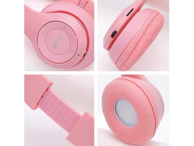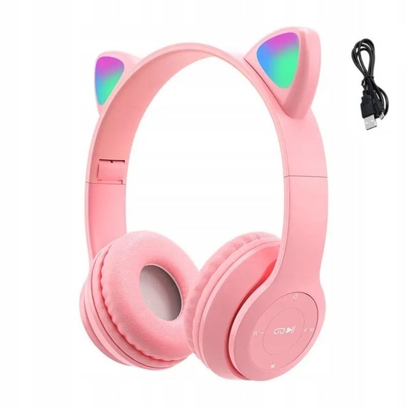 Casti Bluetooth LED RGB, model urechi de pisica, incarcare USB, slot card memorie, roz Casti Bluetooth LED RGB, model urechi de pisica, incarcare USB, slot card memorie, roz