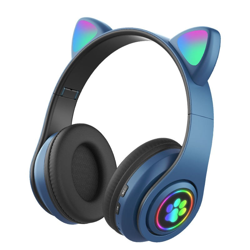 Casti CAT cu lumini, Bluetooth 5.0, cu microfon si card Micro-SD , culoare: albastru Casti CAT cu lumini, Bluetooth 5.0, cu microfon si card Micro-SD , culoare: albastru