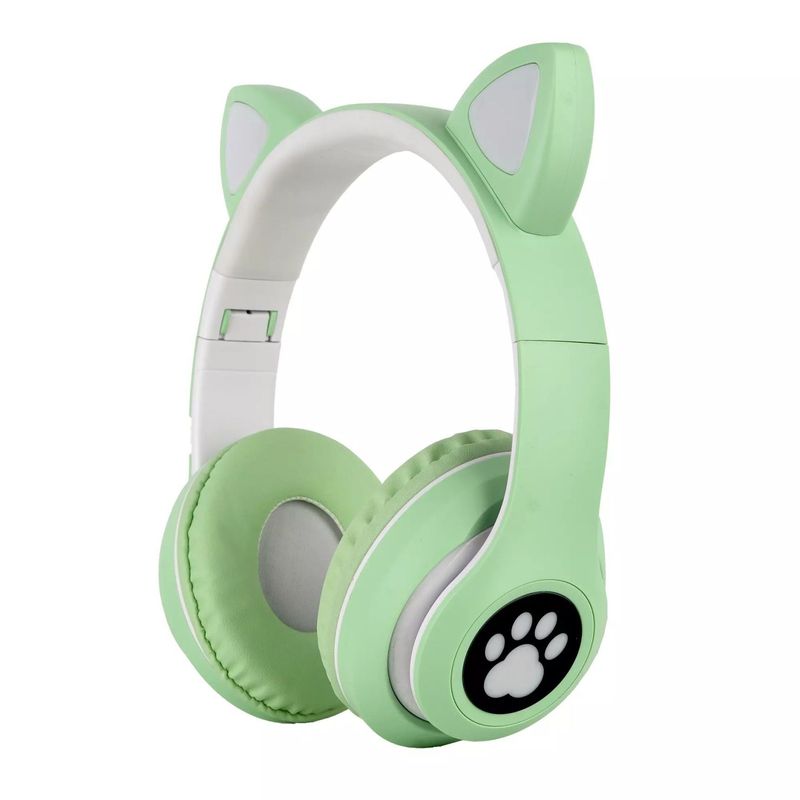 Casti CAT cu lumini colorate, Bluetooth 5.0, microfon si card micro-sd , culoare: verde Casti CAT cu lumini colorate, Bluetooth 5.0, microfon si card micro-sd , culoare: verde