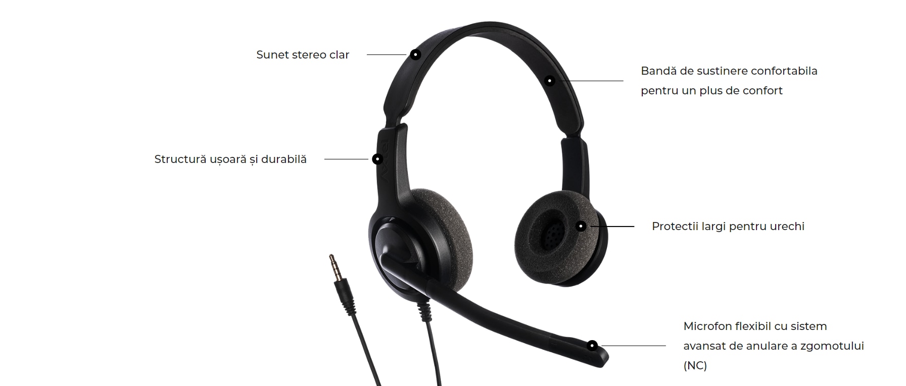 Casti cu microfon Axtel Voice PC28 duo NC, Jack 3.5 mm, Negru Casti cu microfon Axtel Voice PC28 duo NC, Jack 3.5 mm, Negru