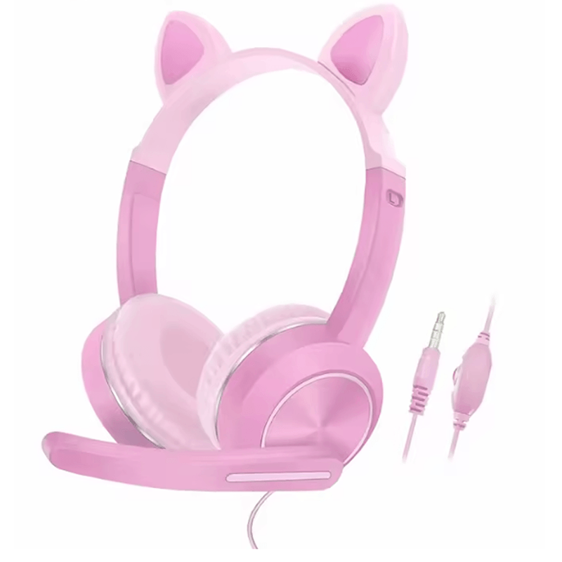 Casti pentru copii Roz–Brivoo®, Design dragut, sunet clar, Conectivitate 3.5mm AUX, Microfon & Anulare Casti pentru copii Roz–Brivoo®, Design dragut, sunet clar, Conectivitate 3.5mm AUX, Microfon & Anulare