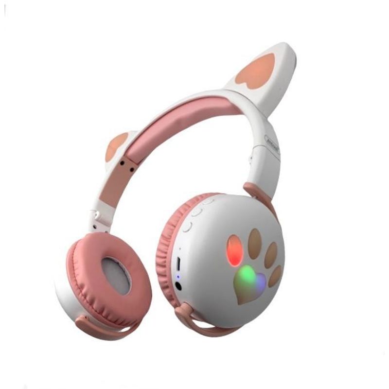 Casti wireless cu urechi de pisica si lumini LED , culoare: alb Casti wireless cu urechi de pisica si lumini LED , culoare: alb