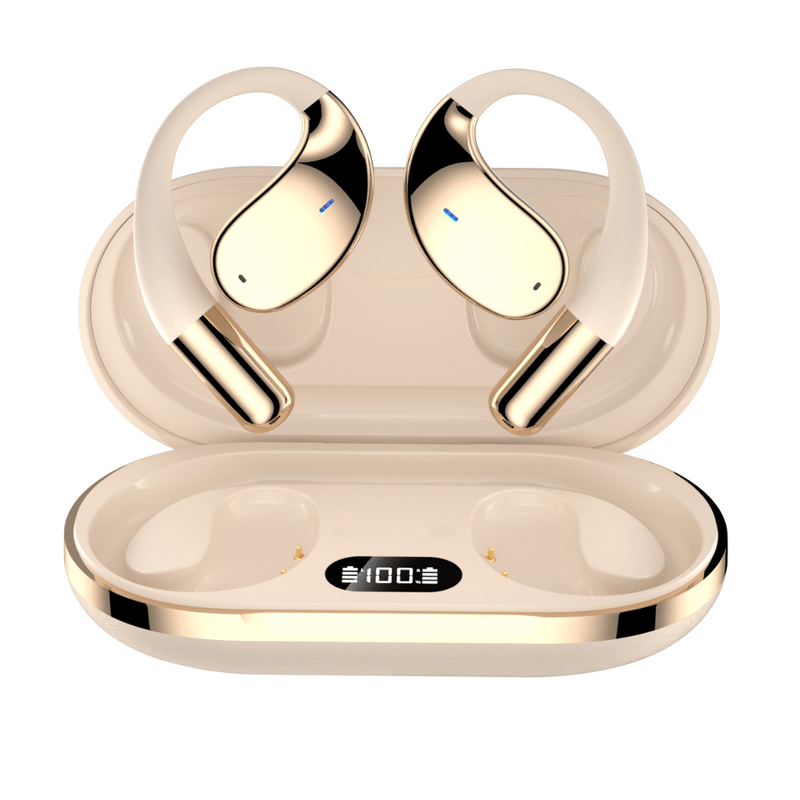 Casti wireless open-ear, traducere AI in timp real, 144 limbi, afisaj digital, bluetooth 5.4 dual-mode, functie anulare zgomot, microfon HD, control tactic, rezistenta la apa IP54, compatibilitate universala, Bej, A ATAB