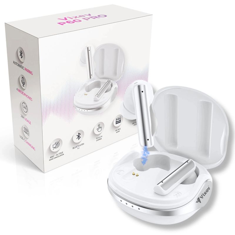 Casti wireless VIXEV, bluetooth 5.2, fara fir, 4 microfoane dual, apel HD, ANC, touch control, alb, pairing automat Casti wireless VIXEV, bluetooth 5.2, fara fir, 4 microfoane dual, apel HD, ANC, touch control, alb, pairing automat