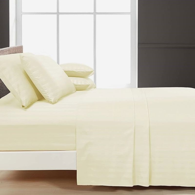Cearsaf de pat Kotonia Home Deco, 100% bumbac, Damasc Saten, dimensiune dungi 1 cm, Vanilla, 150x240 cm Cearsaf de pat Kotonia Home Deco, 100% bumbac, Damasc Saten, dimensiune dungi 1 cm, Vanilla, 150x240 cm