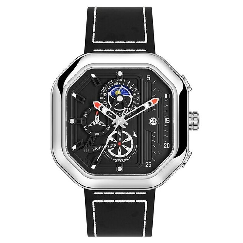 Ceas barbatesc Lige Octogon Piele Cronograf Data Argintiu Ceas barbatesc Lige Octogon Piele Cronograf Data Argintiu